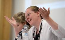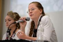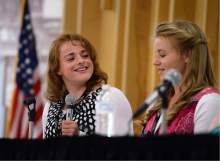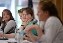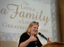 Dollie Blackmore, 18, showed slides of some of her siblings and the nieces and nephews her age. The generations grow up together, she said, with both the mothers and the older siblings looking out for them.