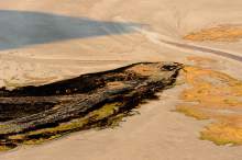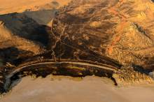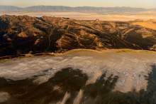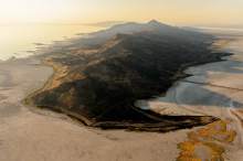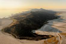 An aerial view of Antelope Island, showing the scope of the damage caused by a fire that bu