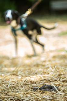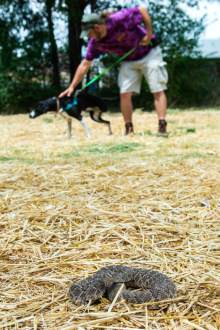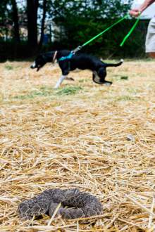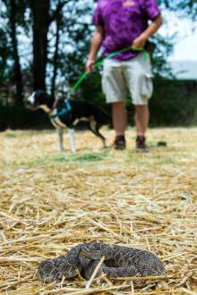 Taylorsville • The dog locked eyes on the rattlesnake, sniffing the ground closely and curiously as it inched closer to the creature that could strike at any moment. That wouldn't happen, though. A trainer pressed a button on her remote, and the dog's shock collar activated. Suddenly, the dog yelped, jumped up in the air and refused to approach the rattlesnake again.