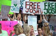 Family, friends and neighbors came to support Laurie Holt's efforts to free her son from jail. One man stood on the Capitol steps holding a neon green sign Josh Holt's favorite color that read "Libertad para Josh." A blond-haired woman walked around waving a small American flag. And the whole group chanted in unison: "Bring Josh home."