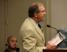 Defense attorney Scott Wilson talks during preliminary hearing for his client, Sergio Briseno Medina, who is charged with first-degree felony murder for the February stabbing death of 21-year-old Hope Gabaldon. On Feb. 25, 2016, Gabaldon was found lying on the side of the road near 3100 S. 4000 West in West Valley City. Hearing was in Judge Richard McKelvie's court room at the Matheson Courthouse in Salt Lake City Friday May 13, 2016.