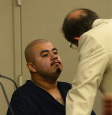 Sergio Briseno Medina listens to testimony in his preliminary hearing in Judge Richard McKe