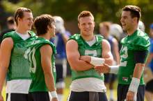 "The next question, my guess, is about Tanner," he said, after talking about his health. "Tanner and I have a good relationship. He's a great quarterback. I think the combination of us two, we help make each other better. So yeah, no issue there."