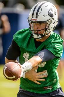 After Thursday's scrimmage in which the quarterbacks evenly divided the playing time and led the offense on at least one long scoring drive each, head coach Kalani Sitake said both stood out and declined to name a favorite in the race. He acknowledged that "it will be beneficial for us to have a starting quarterback announced as soon as we can," and hinted that it could happen "in the next couple of days."
