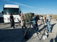 The sensor is about the size of a toaster oven. It oscillates on a tripod and shoots infrared rays to detect signs of toxins in the air. As he waited for an explosion that would send chemicals into the wind for a test, Tercha explained his sensor system to about a dozen middle-age white men from the U.S. Department of Defense and other government agencies.