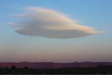 A lenticular cloud formation appears at sunrise from Murphy's Campground on the White Rim Trail in Canyonlands National Park in May, 2013.