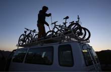 Holiday Expeditions guide Dave Snee gets mountain bikes ready for the third day of a four-day trip at Murphys Campground on the White Rim Trail in Canyonlands National Park in May, 2013.