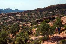 A couple walks to Upheaval Dome in the Island in the Sky District at Canyonlands National