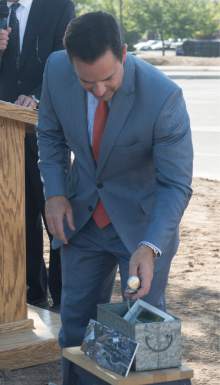 Officials buried a time capsule at the interchange on Wednesday. It included a dollar bill to represent its economic impact; a watch to represent time savings; glasses to show the project has vision; a keystone to represent community support; and photos of the project.