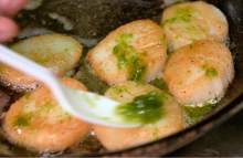 Place the scallops on a clean paper towel. You want them very dry before cooking. Season with salt and pepper.
