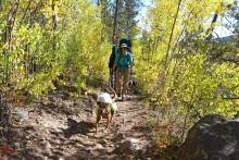 Cindy Bird Vance and her dog, Adia, embark on the Henrys Fork Trail toward Kings Peak in the Uinta Mountains. Monday, Sept. 5, 2016.
