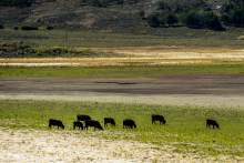 Cattle graze near Scofield Reservoir in Carbon County Wednesday August 31, 2016. A growing algal bloom at Scofield Reservoir forced officials to close the popular Carbon County fishery to boating and swimming Wednesday until further notice. The Southeast Utah Health Department made the decision after lab results were returned showing escalating levels of cyanobacteria at Mountain View boat ramp at Scofield State Park and other places on the 2,800-acre lake nestled at 7,600 feet above sea level in the Price River's headwaters.