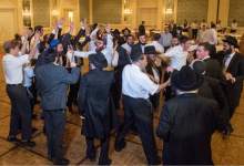 Rabbi Mendy Cohen and the men dance during his traditional Hasidic wedding celebration at the