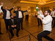 The men and boys dance as they celebrate during a traditional Hasidic wedding at the Grand Am