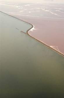 The causeway, which bisects the lake, limits the flow of water between the north and south sections of the lake. Culverts in the causeway were intended to facilitate the flow of water between the two lake halves, but by 2011 they had sunk about 20 feet and become unstable, leading Union Pacific to begin filling them. Union Pacific agreed to open a breach, traversed by a bridge, elsewhere on the causeway to replace the culverts.