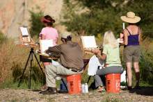 Plein air artists creating works in oil, pastel, watercolor or mixed media compete for prizes valued at more than $10,000. Other events include artist workshops, demonstrations, hands-on arts, art sales, and speakers taking about art photography, mapping, dinosaurs, dark skies and murder mystery in the American West. This year's artist-in-residence is Loretta Domaszewski from Montana.