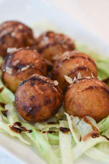 Pass on the mushy egg rolls ($4.35) and instead get the takoyaki, translated to octopus balls ($5.35) on the menu. These warm, bite-size globes of minced octopus, tempura, ginger and green onions, which are fried and topped with bonito flakes that fluttered as the heat rose off them, were memorable in taste and presentation.