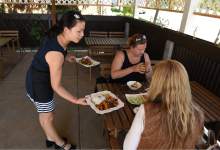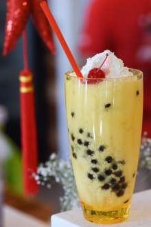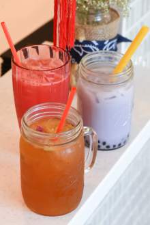 As you wait for your order of boba tea ($4.50 small, $5.35 large) or a fruit smoothie ($4.50 small, $5.35 large), take in the remodeled interior of exposed beams, wood surfaces and panda pictures. You can mix up to two flavors of the 15 or so options although my first two choices were unavailable but the coconut was light and refreshing on a hot afternoon.