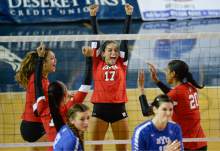 In the opener, a nice touch shot by junior Eliza Katoa was the set-clincher. In the second, middle hitter Tawnee Luafalemana made several big blocks in an 8-2 run by the Utes at the end of the set.
