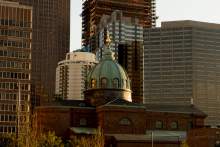 At the time, two parcels were available both parking lots but with different owners, Stephenson says. The one that eventually would house the temple came at a reasonable cost, but when LDS officials approached the owner of the future home of The Alexander apartments and shops, he "jacked up the price."