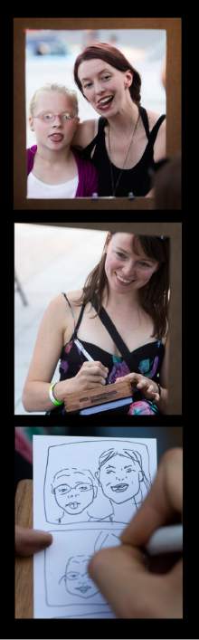 Shaney, 9, and Caylee Gabbott get their photo drawn by Natalie Edwards, at the Hand Drawn Pho