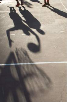 Three-on-three teams compete in the Hard N Paint basketball tournament, as party of the Urban