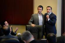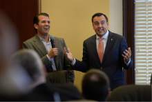 Before GOP state lawmakers, Trump Jr. said: "It is a privilege to go around the country talking to real Americans who built this great nation, who have been left behind oftentimes by politicians in D.C. who haven't had their best interest at heart. ... We want to change that and try to put someone in there who will be a disrupter, and that is my father."
