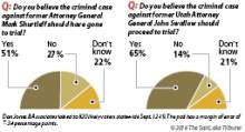 New poll results gathered by Dan Jones & Associates for The Salt Lake Tribune and the Hinckley Institute of Politics at the University of Utah found that 48 percent of likely voters believe the Shurtleff prosecution should have gone to trial. Nearly a third (30 percent) disagree, and 22 percent offered no opinion.