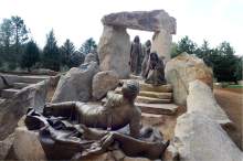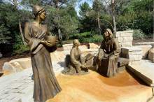 The sculpture "I Give You Living Water" - John 4:4-42, Thursday, September 22, 2016 in the The Light of the World garden. The garden has sculptures created by Utah artist Angela Johnson, including a total of 15 scenes and 35 statues, with 14 scenes from the New Testament and one, LDS Church-inspired scene depicting Joseph Smith's First Vision.