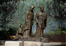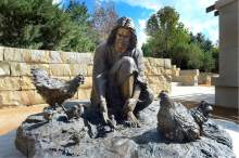 "His Gathering" - Luke 13:34, in the The Light of the World garden, Thursday, September 22, 2016. The garden has sculptures created by Utah artist Angela Johnson, including a total of 15 scenes and 35 statues, with 14 scenes from the New Testament and one, LDS Church-inspired scene depicting Joseph Smith's First Vision.
