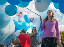 l-r Cottonwood Heights youth city council members Alissa Boyack, Nicole Cunningham and Lareesa Sumsion wrangle balloons for the ceremony. Cottonwood Heights City Hall officials, dignitaries and residents celebrated its official opening with an open house and ribbon cutting September, 29, 2016.