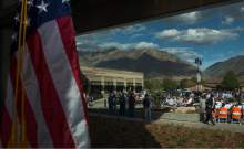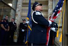 Cottonwood Heights Police officer Jeff Potter leads the color guard prior to the ceremony.