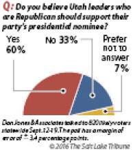 A Salt Lake Tribune-Hinckley Institute poll asked likely GOP voters if their leaders should support their party's nominee. Sixty percent said yes.