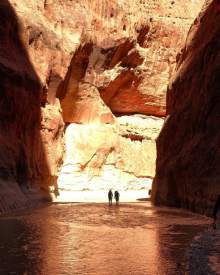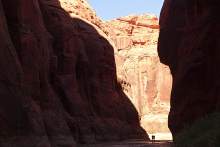 Sunlight peeks into the narrows of Buckskin Gulch on Sunday, Sept. 25, 2016. Days after a rainstorm, water levels were waist-deep at spots.