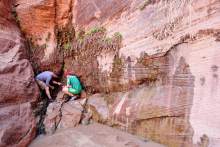 Maurice Bürgin, Kristopherson Sloan and Peter Wagner explore a crack in the Paria Canyon