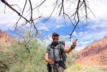 Peter Wagner stops for a break while hiking along the Paria River on Wednesday, Sept. 28,