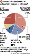 Lee is seeking a second Senate term and, at this point, holds a huge lead over Snow, a grocery store cashier who is running for public office for the first time. A UtahPolicy.com poll from August found Lee up 35 percentage points and the Tribune/Hinckley poll found Lee with an approval rating of 61 percent. The two candidates will appear at a debate Oct. 12 at 6 p.m., which will be live-streamed at sltrib.com.