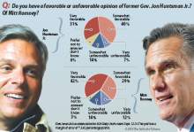 Romney received more fervent support, earning an overall 42 percent "very favorable" rating in the survey conducted by Dan Jones & Associates in mid-September. Huntsman logged 31 percent in that category.