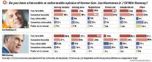 Huntsman had more consistent support. His "very favorable" numbers hovered in the low 30s and his "somewhat favorable" responses were mostly in the 40s for almost every category.