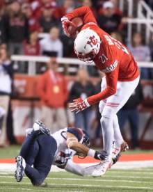 Arizona Wildcats linebacker Michael Barton (11) brings down, Utah Utes wide receiver Tyrone Smith (21), in PAC-12 football action, Utah vs. The Arizona Wildcats, at Rice-Eccles Stadium, Saturday, October 8, 2016.