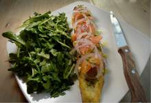The build-your-own lox station features mouthwatering brined and smoked salmon along with bagels, cream cheese and all the right accompaniments red onion, capers, tomatoes and lemons. Pair it with a spicy Bloody Mary or the award-winning Dead Man's Boots cocktail made with High West spirits made in the distillery next door.