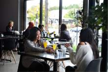 Start your meal with the Current Bloody Mary accented with a plump shrimp chaser or one of several brunch cocktails.