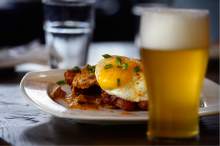 "We aim to create a balance of lighter items like salads or our Utah trout lox with some heartier dishes like the schnitzel and eggs and the sausage hash," says owner Scott Evans about the brunch menu.