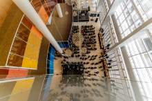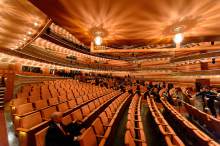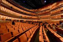 The $119 million theater, built to attract traveling Broadway musicals, boasts a facade of steel and glass that lets light pour into a vaulted six-story lobby, while giving theatergoers a panoramic view of Main Street.