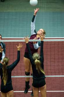 But Cox, the only regular returning from the 2015 state championship team, and Marcie Stapley provided Morgan (26-3) with its own dynamic duo. Cox had 14 kills and three blocks while Stapley, a junior who rotates in the middle with Cox, led the Trojans with 15 kills.