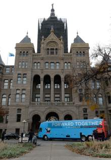Donna Brazile, the chairwoman of the Democratic National Committee, rolled into town in a big blue bus with "Forward Together" emblazoned on the side, urging Utah Democrats to make sure they vote, as the perennial minority party tries to pull off the unthinkable turning Utah blue for the first time since 1964.