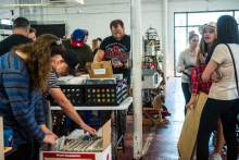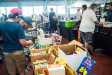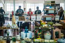 People browse merchandise for sale at The Salt Lake City Flea Market & Swap Meet at th