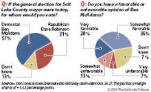 McAdams had the support of 57 percent of the county voters surveyed Oct. 20-27 for a Salt Lake Tribune-Hinckley Institute of Politics poll, compared to 31 percent for Robinson. About 13 percent of those contacted did not know or refused to answer.