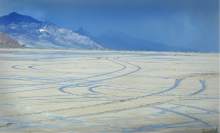 Driving off-road on the Bonneville Salt Flats is prohibited when the salt crust is wet. When dry, the salt flats form a hard, pavement-like surface, but when wet, the weight of a vehicle can cause the layers of mud and salt to collapse, potentially causing irreversible damage to the salt crust's structure.