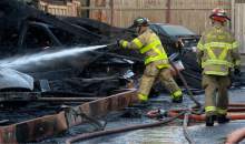 Bednarik said that the blaze initially was reported as a single car fire, so one engine company was dispatched at first. However, as that unit arrived the crew spotted several vehicles ablaze and the flames rapidly spreading, so a second alarm was called.